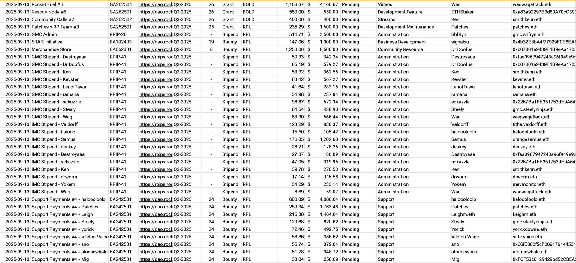 September’s payments paid out at an RPL price of $6.80. The current value of the treasury in USD terms is approximately $207,000.