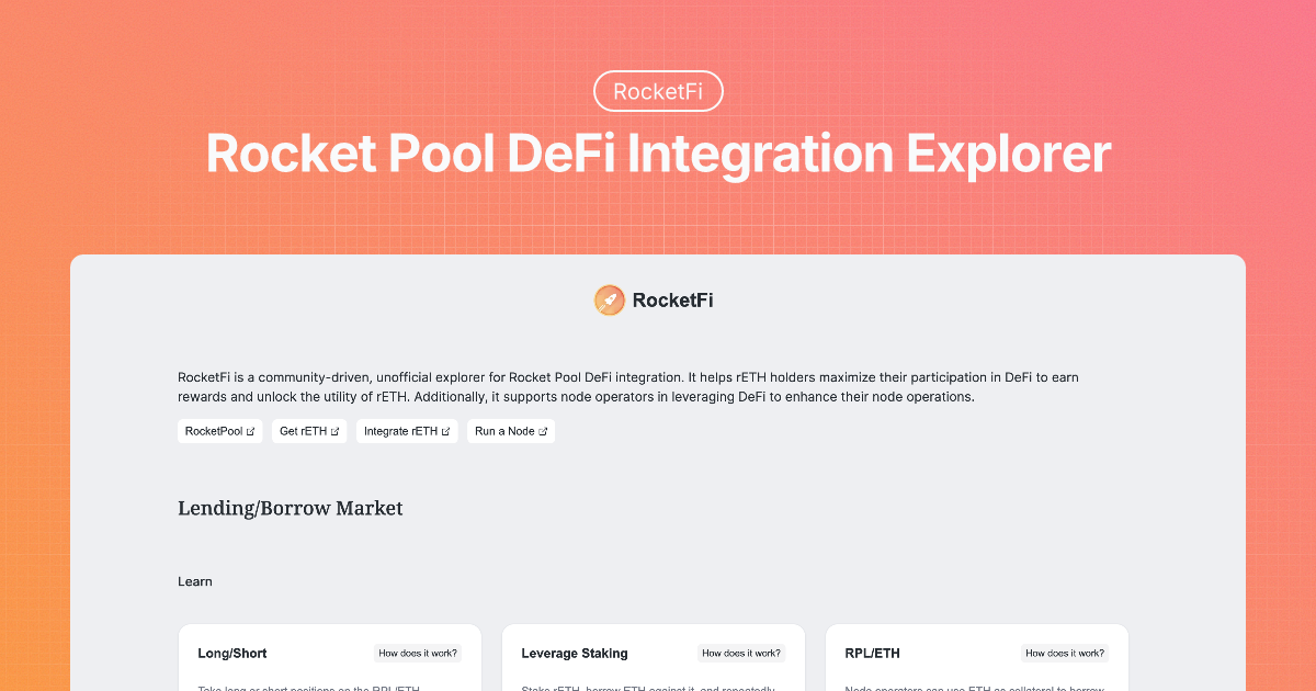 DeFi Protocols: Protocols that integrate or utilize rETH (such as liquidity pools, lending protocols, or synthetic asset platforms) will benefit from having improved data and analytics to better assess the health and stability of Rocket Pool, thereby enhancing risk management and integration strategies.